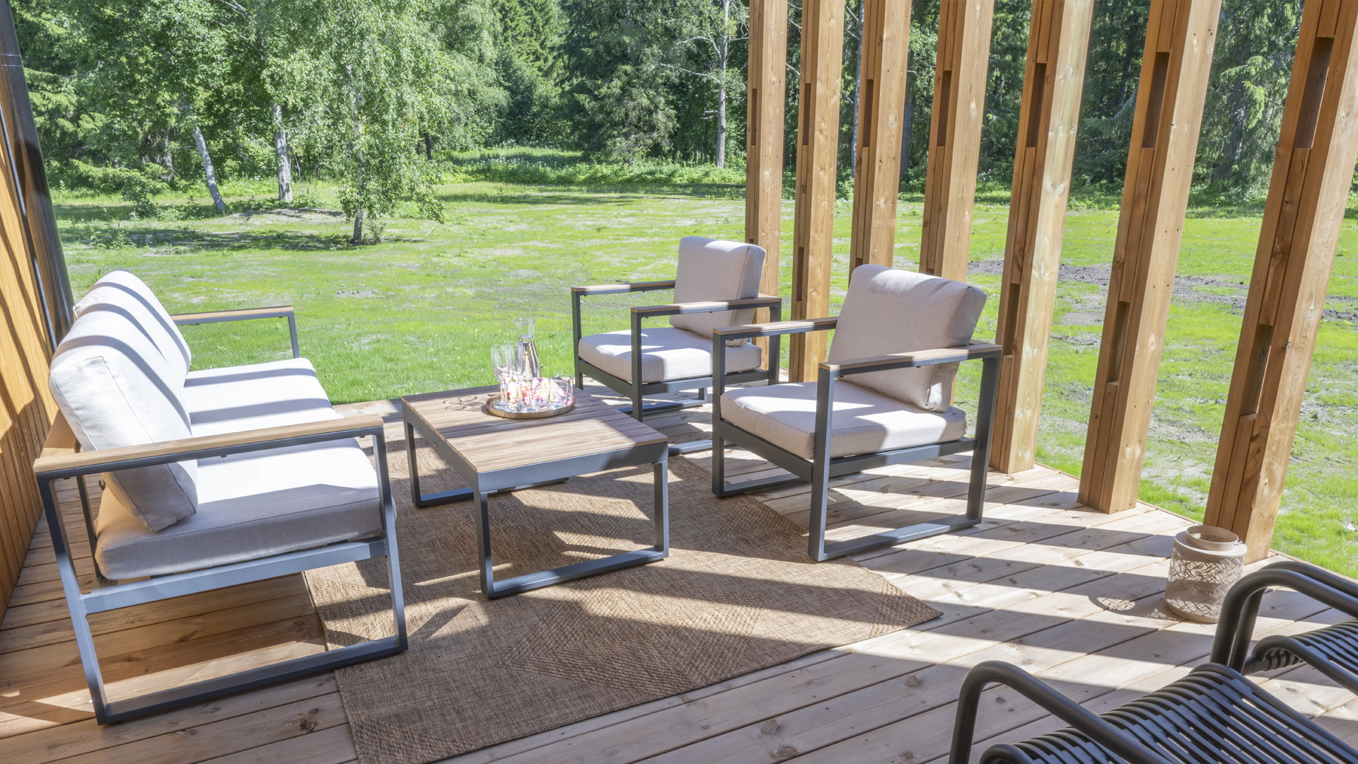 Villa Uleå’s Sauna Yard is designed for up to 30 guests. The area features three separate saunas, a warm hot tub, a spacious terrace, and a cozy firepit.