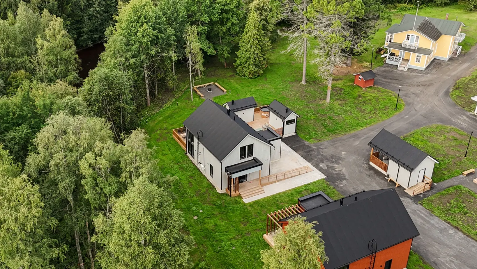 - 4 korkeatasoista täysin varusteltua majoitushuvilaa (4mh), jossa kussakin voi majoittua 8+2 hlöä (yhteensä 40 vuodepaikka)